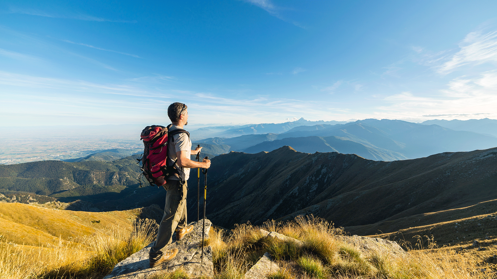 夜明けに山を登るときも、